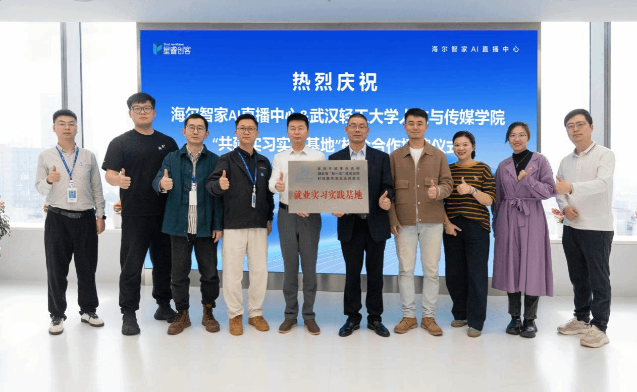 随后,校企双方围绕 “产业发展与人才培养” 主题召开座谈会。会上,海尔智家 AI 直播中心负责人结合企业发展规划,介绍了当前直播电商行业的发展趋势,以及企业在 AI 技术赋能直播、全链路数字化运营等方面的布局,并提出了对 “懂技术、善策划、会运营” 的复合型新媒体人才的迫切需求。