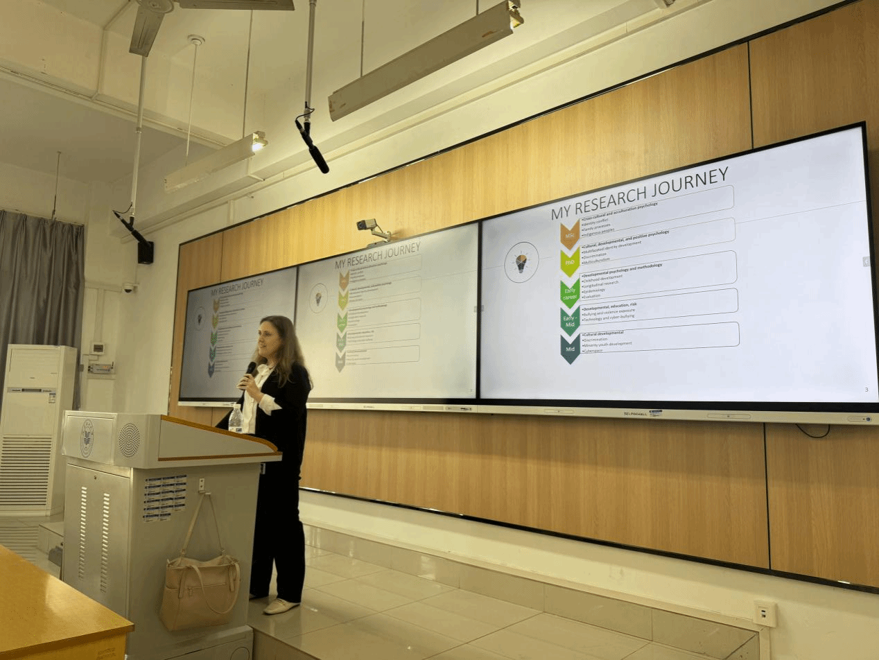 讲座中,斯图尔特博士以《数字技术的社会维度:网络空间构建与群体赋权》为题,结合其牵头的联合国性别、人工智能与网络安全重点项目实践,系统阐述了新兴技术对社会发展的双重影响。作为应用文化与发展心理学家,她聚焦网络心理学核心领域,从人机交互优化、安全网络空间构建两大维度展开分析,通过具体案例深入解读了少数群体与高风险群体的数字赋权路径,凸显了“技术发展需兼顾社会正义”的核心观点。