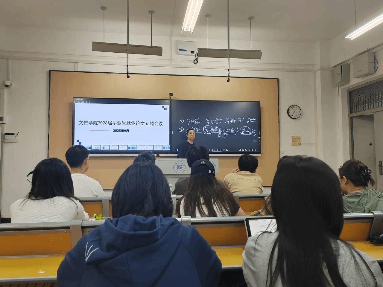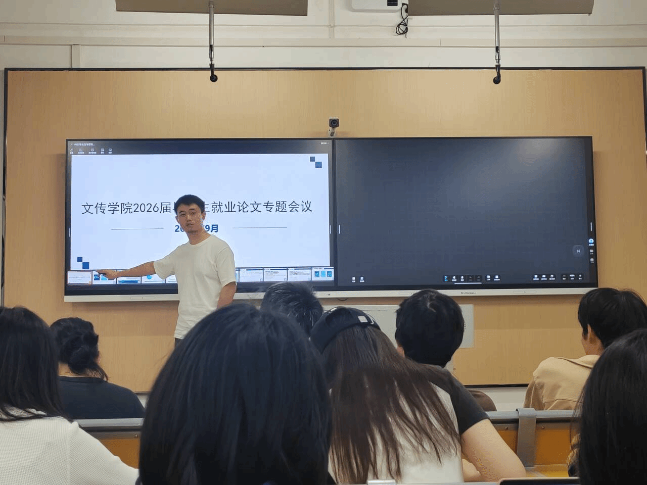 为抢抓就业黄金期,助力毕业生明晰发展路径,9 月 22 日,文传学院针对广告学、汉语言文学两专业的2026届毕业生,召开就业论文实习动员会。学院党委副书记黄俊华、广告学系主任信莉丽、汉语言文学系主任刘科军、毕业班辅导员彭硕联袂主讲,从论文撰写、就业规划、实习实践三个核心维度,为毕业生送上全面且实用的指导。